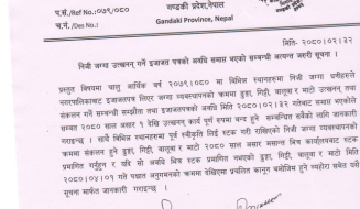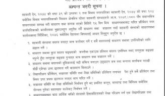 जिल्ला प्रशासन कार्यालय, तनहुँवाट तनहुँ जिल्लाभर लागु हुने गरी मिति २०७८-०५-०७ गते सम्म निषेध आदेश जारी ।