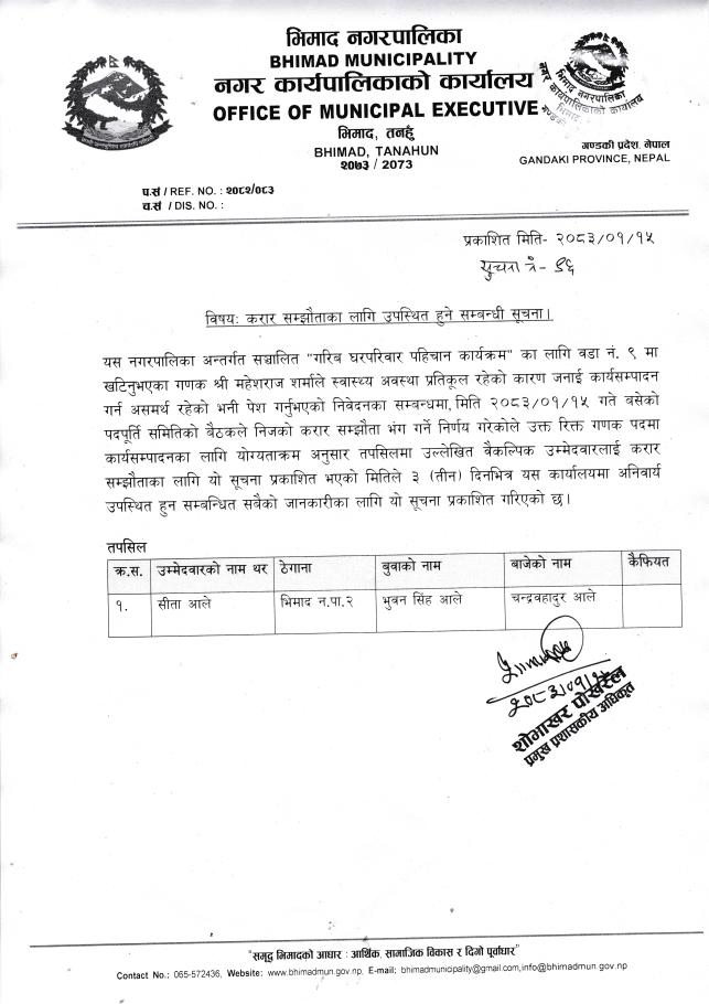 करार सम्झौताका लागि उपस्थित हुने सम्बन्धमा