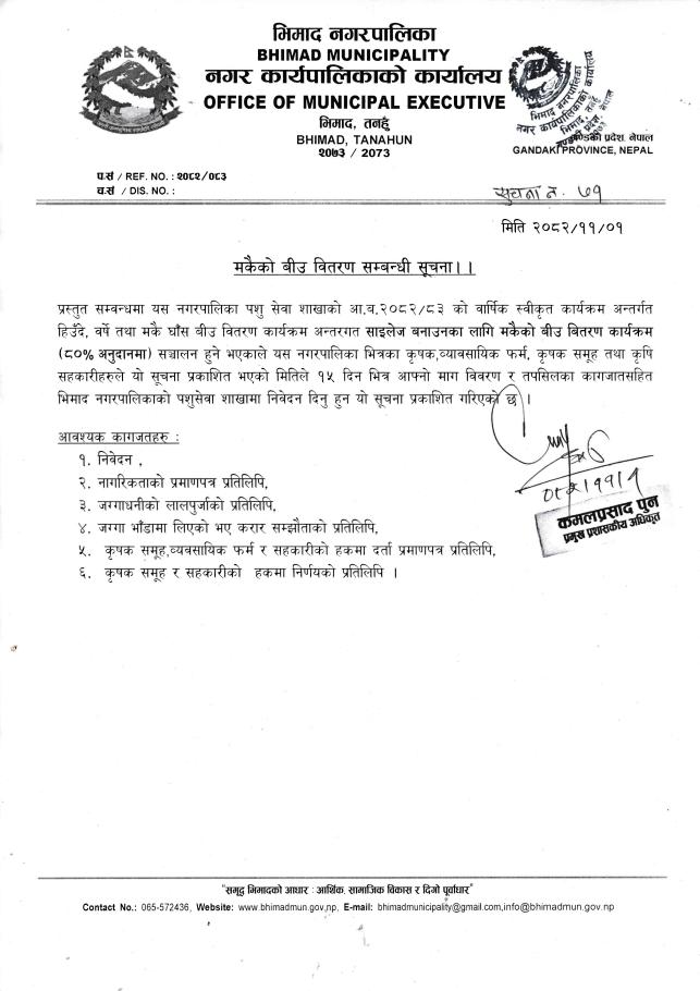 मकैको बीउ वितरण सम्बन्धी सूचना