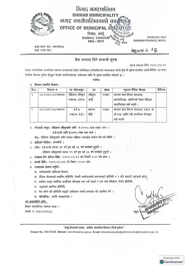 विज्ञापन नं ०६ र ०७ - २०८२/०८३ (स्वास्थ्य) मेडिकल अधिकृत र अ.हे.ब पदमा सेवा करारमा लिने सम्बन्धमा